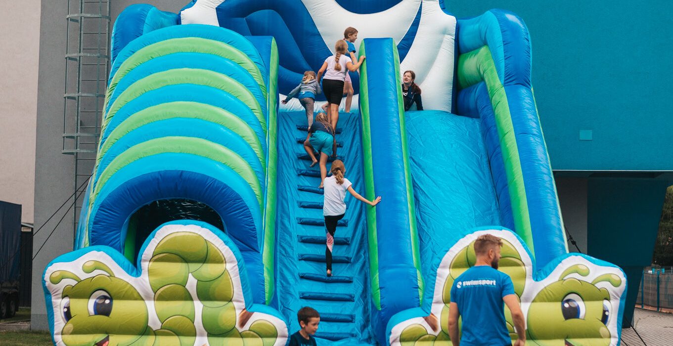 Dmuchana zjeżdżalnia Swimsport to nasz customowy dmuchaniec, którym możecie cieszyć się razem z nami!